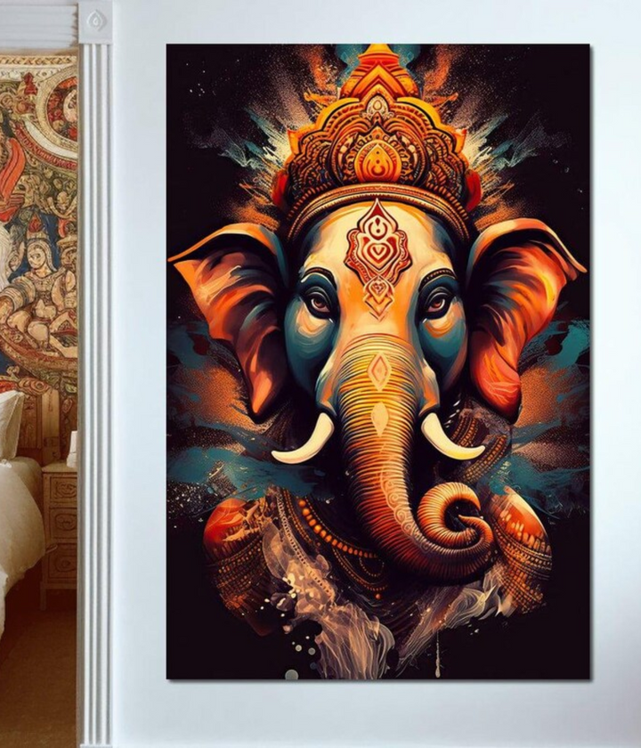 Majestic Lord Ganesha Modern Wall Art Canvas