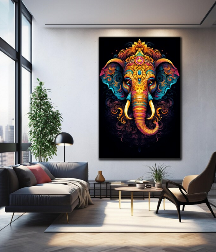 Elevate your space with this Vibrant Abstract Lord Ganesha Wall Art Canvas, featuring bold colors, intricate patterns, and a striking modern design. Symbolizing wisdom, prosperity, and good fortune, this artwork blends tradition with contemporary style. Perfect for living rooms, offices, or meditation areas, it adds spiritual charm and a captivating focal point to any interior décor.